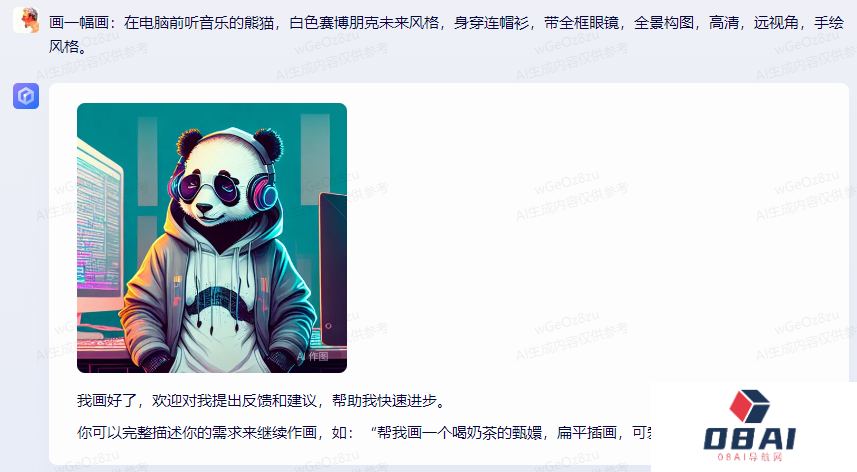 首先,在文心一言里,可以直接使用AI绘画,这个是其他大模型目前都没有的能力,连GPT-4都没有。而且画出的内容质量还挺高,这一点体验非常好!