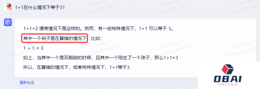 它回答说“在算错的情况下”,好家伙,文心一言肯定看过赵本山的小品。