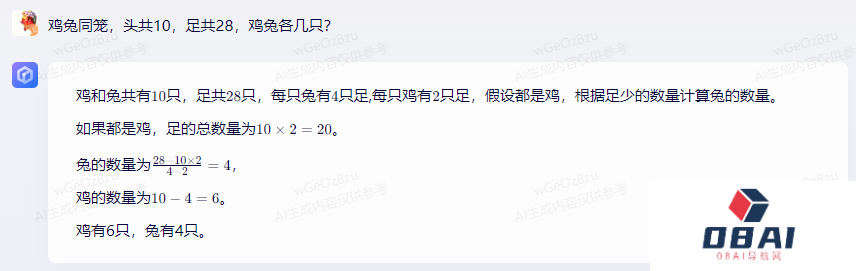 首先是“鸡兔同笼”:"鸡兔同笼,头共10.足共28.鸡兔各几只?”