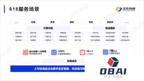 三、上市快消品企业携手实在智能,供应链与财务业务高效“闭环”该企业位居世界500强,销售市场覆盖全国范围,包括超市、便利店等线下渠道和以淘宝、京东等电商平台,官方网站为主的线上渠道,单日发运量可达百万箱。对于工作人员而言,物流发货、到货通知和出入库流水等日常核对工作压力巨大。物流跟踪,发货到货及时提醒该企业每日有数百万箱货物销往全国各地,员工很难实时监控物流进度,并及时推送给客户发货到货通知,客户满意度提升所面临的问题迟迟未得到解决。为了提升物流管理的效率和应对618大促爆单,同时缓解前线员工的工作压力,该企业通过实在Agent实现物流跟踪、到货通知等20+场景自动化,并取得超预期效果。实在Agent上线后,能够自动与企业EMC系统对接,获取已发货订单列表,再登录各销售渠道后台,根据列表查询订单信息并推送发货,到货通知和签收提醒给客户,时效性由小时级提升到分钟级,在提高客户满意度的同时,也极大减少了企业人力成本,让企业口碑多一重保障。开票对账,效率和准确率大幅提升每天数百万箱货物,对应产生成千上万份发票,财务部门从接收订单信息到完成开票确认、发票回填、银企对账等操作,需要10人团队不断重复整理文件,既费时,又容易出错。在遇到退单等特殊情况时,还需要人工及时获取信息后做进一步的处理,财务团队压力极大。在不需要人工干预的情况下,实在Agent基于公司会计规则,自动提取平台中发票信息,登录开票软件,录入名称、纳税人识别号、地址等开票信息,完成批量开票任务,并自动回传到电商后台。与之前相比,数字员工开票效率提升7倍以上,开票准确率维持在100%,且只留1名员工负责监测流程。
