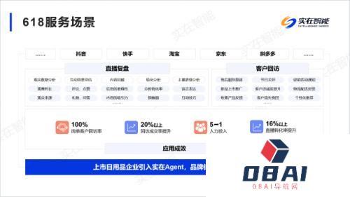 二、上市日用品企业引入实在Agent,品牌销量“井喷”增长618期间,该企业在抖音、淘宝、小红书等多个电商平台同步开设直播间进行线上销售,短时间内吸引了大量客户咨询、加购。但各大平台满减优惠抵扣等规则不尽相同,尤以优惠券比对、去重工作最为繁琐,业务量巨大且易出错,导致企业用人成本急剧增加,效率低下,无法满足大促需求。客服回访,提升询单转化率在618期间,该企业会针对询单流失客户采取二次回访、催拍催付等措施,一方面避免客户因为没有得到及时的回应和服务而流失,降低客户流失率;另一方面则是通过倒计时视觉效果,营造一种稀缺性与紧迫感,从而降低营销成本,提升转化率。在部署实在Agent之前,因团队规模不大,缺乏稳定的客户管理模型与二次回访服务响应时间,导致客户忘记支付,最终订单被取消,企业也因此损失一定利润。在部署实在Agent之后,通过模拟人工方式自动筛选询单流失客户,并依照话术进行二次回访、催拍催付,提高商品成交率约20%,人力投入从5人降为1人。直播复盘,提升话术转化率由于直播平台没有直播视频回放功能或存在回放时间限制,后期复盘没有材料,导致改善直播无从下手。虽然可以人工录屏,但耗时较长,同时人工处理录屏和比对非常耗费时间,总结效率低下。多店铺多直播间也使人工跟踪效果差,缺乏统一规范的调查方法。该企业借助实在Agent,对每个直播间的每场直播进行全过程录屏,根据该直播间店铺的销售数据,分析成交量峰值的时间段,并对该时间段的视频进行语音转文字处理,将格式化的转译内容存入数据库与非格式化的视频转码进行上传,供运营人员复盘分析。与之前相比,企业直播复盘更高效,精炼后的话术也带来16%的转化率上涨。