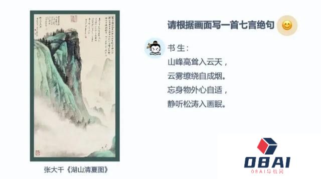 生成文本的同时,书生大模型还给出了“创作思路”:首先确定图片中描绘的元素;其次,从画面中寻找能够表达出诗人思想情感的元素,如山峰高耸、云雾缭绕、松涛等;第三,根据元素构思诗句;最后,根据诗句的韵律和格律完善表达。