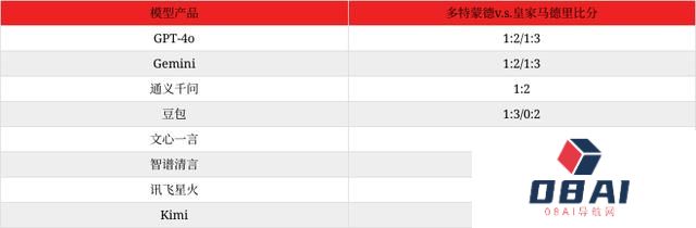 基于这篇文章中4位人类专家提供的信息,虎嗅在赛前利用8种主流大语言模型产品,对比赛进行了预测。8种模型对胜负的预测全中,不过这场比赛的胜负本来悬念不大,根据主流赔率和皇**过往表现,AI预测皇马胜出几乎是必然结果。