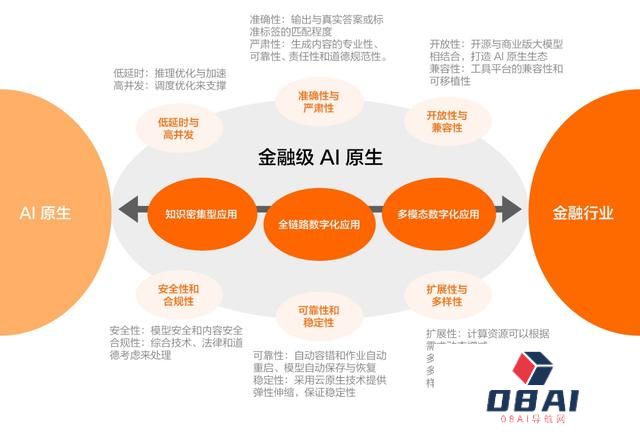 AI技术在金融行业中扎根生长并深入应用,必须严格遵循金融行业的业务规则与标准,这就催生了专为金融领域打造的金融级AI原生。综合考虑金融级行业要求、AI原生核心技术,我们将金融级AI原生总结为如下6大要素: