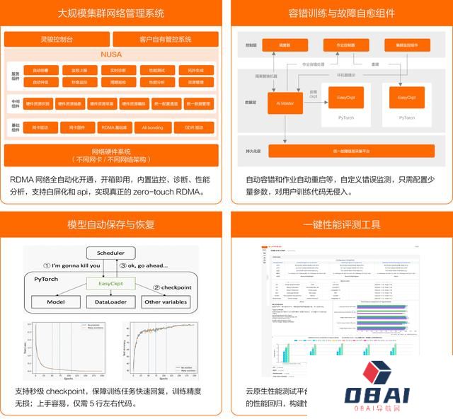 智算平台需要大规模集群调度管理,洞察集群状态与性能变化,掌控系统全貌。通过训练引擎自动容错来屏蔽底层错误,提升任务稳定性和鲁棒性。通过实时保存模型文件,大幅度提高训练任务的整体效率。通过云原生性能测试平台, 完成一键测试系统性能,及时发现隐藏的瓶颈。