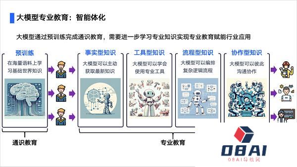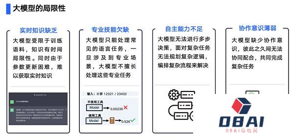 清华大学计算机科学与技术系助理研究员从鑫从技术前瞻的角度发表了主题为《大模型驱动的群体智能技术正成为推动革新的核心动力》的演讲。他介绍道,大模型是人工智能的前沿制高点,将成为智能时代的基础设施。同时大模型也存在诸如专业技能欠缺、协作意识薄弱等局限,需进行专业教育实现智能体化,并通过AI Agent(人工智能体)赋能行业应用。