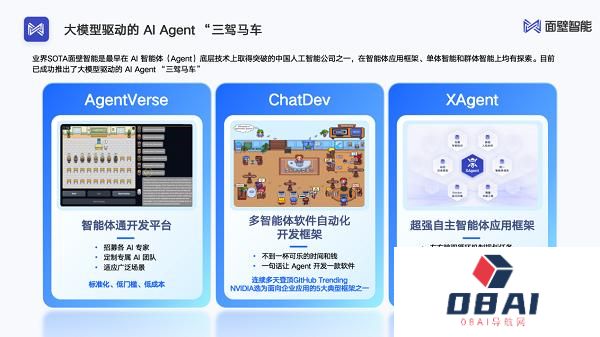在公司成立的初始阶段,面壁团队即开始AI Agent研究和应用探索,并不断在底层技术上取得*创新突破。2023年发布了大模型驱动下的Al Agent“三驾马车”,全面覆盖单体智能、群体智能和智能体应用框架领域。