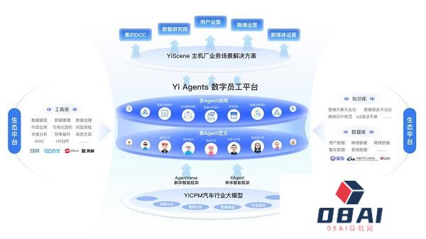 解决方案的实施基于易慧智能推出的相关产品。其基于800亿参数的YiCPM汽车行业大模型,打造了Yi Agents数字员工平台,包含单体智能以及群体智能协同平台,同时根据主机厂的实际需求研发的场景解决方案,包含集约 DCC、数智研究院、用户运营、舆情运营和新媒体运营等五大场景。