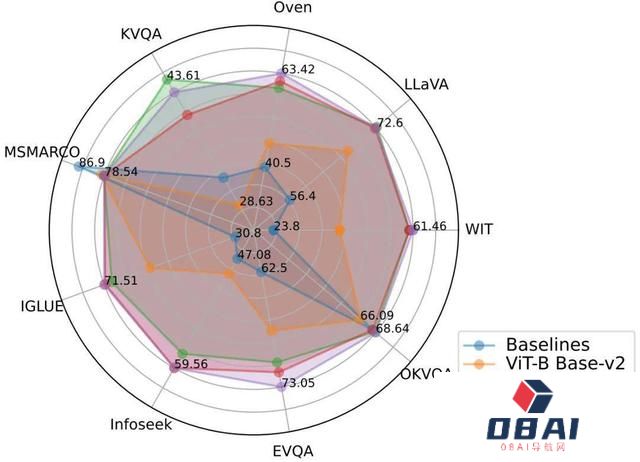 扩展视觉编码更加有效:作者发现将图像编码器 ViT 从 ViT-B(86M)升级到 ViT-L(307M)带来了显著的效果提升,但是将文本编码器 ColBERT 从 base(110M)扩展到 large(345M)导致表现下降并造成了训练不稳定问题。实验结果表明对于后期交互多模态检索系统,增加视觉编码器的参数带来的回报更大。同时,使用多层 Cross-attention 进行图像 – 文本投射的效果与使用单层相同,因此图像 – 文本投射网络的设计并不需要过于复杂。