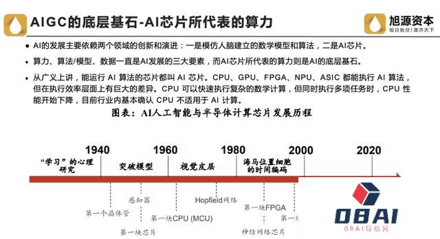 OpenAI发布ChatGPT模型引起了AIGC应用的爆红,AI领域的应用和创业再次迎来了资本的追捧,AIGC的创业项目纷纷获得巨额融资。AIGC可应用于各行各业,比如聊天、写作、视频、音频、制图、设计等,甚至可以生成游戏策略和代码。AIGC时代序幕已拉起,各大厂商纷纷布局。但是,AIGC的应用,离不开底层芯片与算力的支撑,在这一背景下,我们如何理解、发掘算力芯片产业,显得尤为重要。