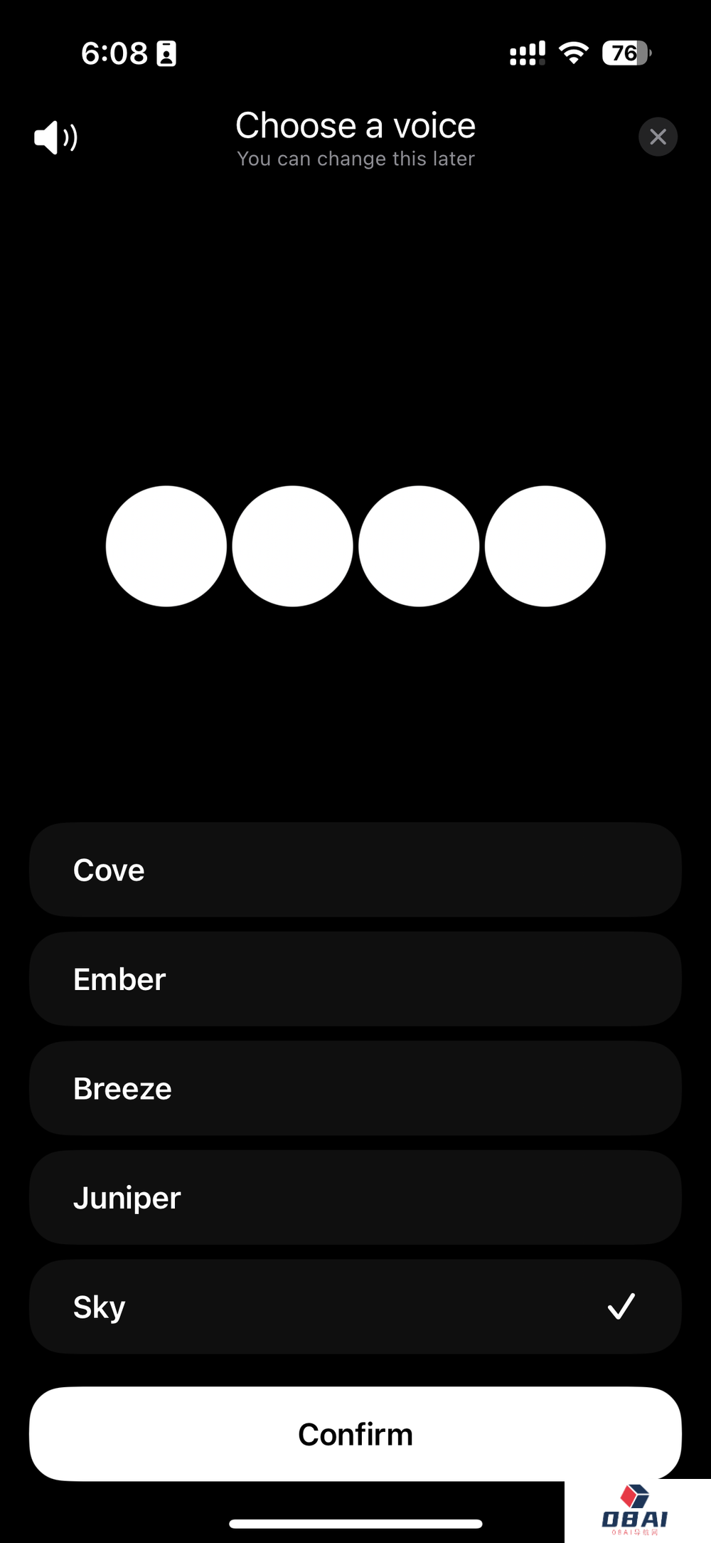 你也可以查看对话的历史聊天记录,与聊天机器人的每一轮语音对话,均会以文本的形式呈现在聊天对话记录当中展示,方便随时进行查看。OpenAI还为用户提供了ChatGPT Voice的多项小功能,包括暂停、中断对话,更换人物的音色等功能,有五种音色可供选择。