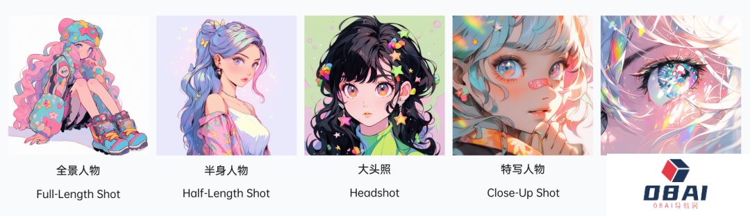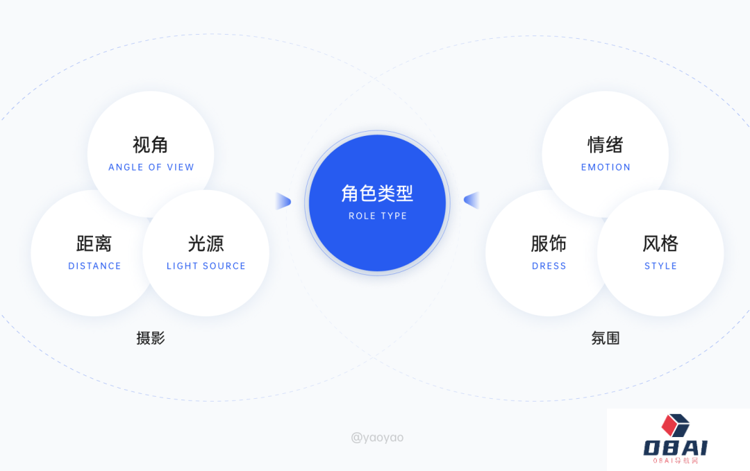 可以看到上面的万能公式中,包括角色构图的视角、距离、光源、角**绪、角色服饰、风格,这也就是接下来我们要聊的角色类型的六大方向。
