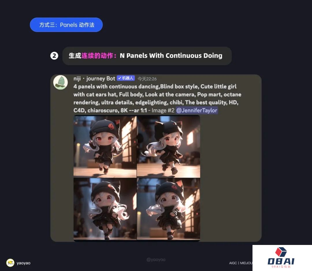 我们输入 「4 panels with continuous dancing + 描述词 」可以得到跳舞的一系列动作角色图