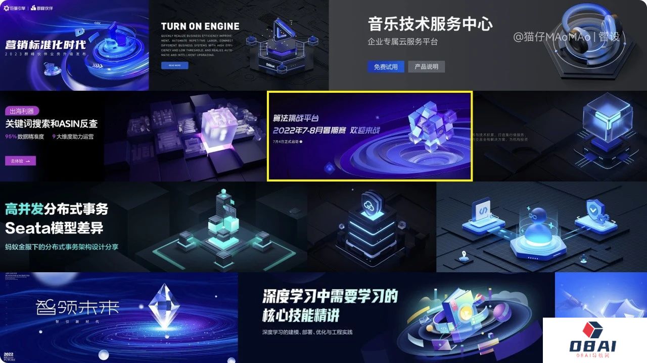 B端很多都是概念性的需求,所以我会先去参考网站上寻找参考图,确定设计方向,以暗色系B端视觉为例,我们找到一堆参考图:
