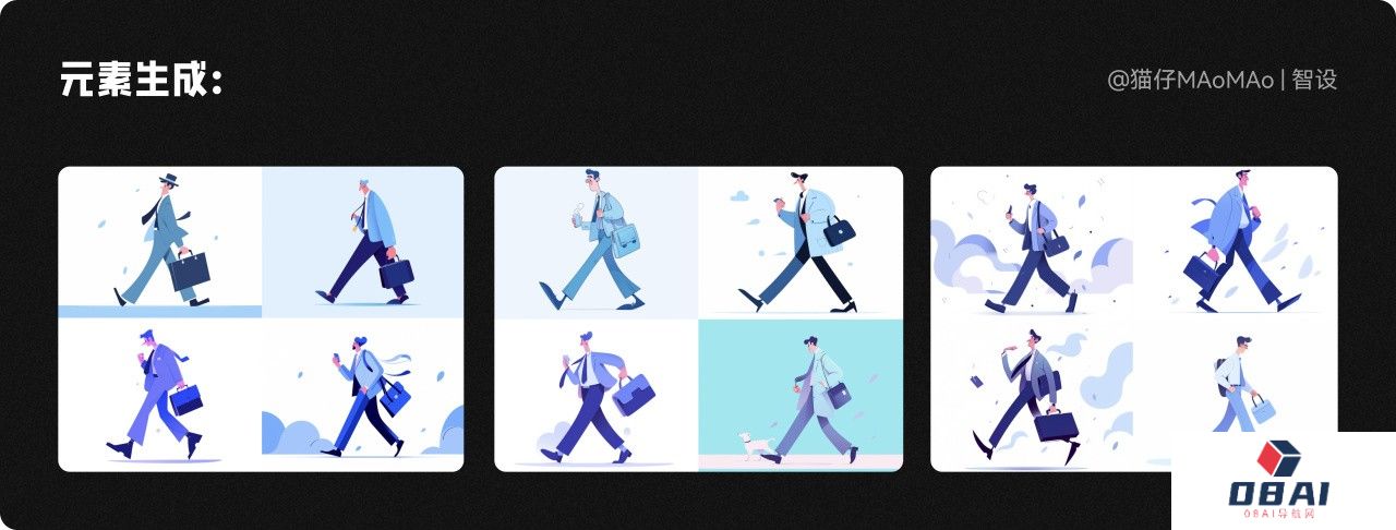 一般我们生成B端视觉,都是banner组图等,不是单张出现,想要保持风格不变的同时,主题内容不同,只需要更改红色关键词即可实现,最终我们就得到了下图我需要的所有主视觉元素。