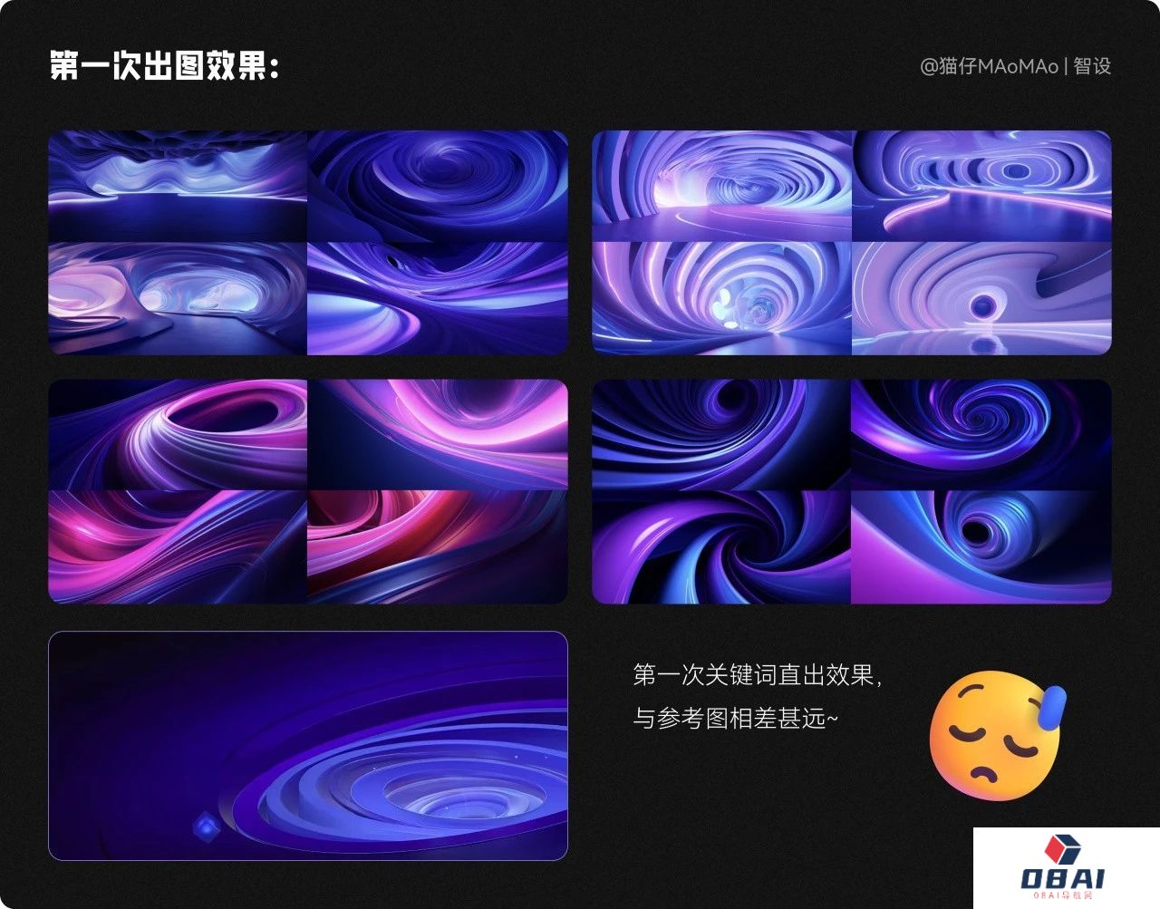 我们看到第一次关键词直出的效果,并不理想,与我们的参考图相差甚远。