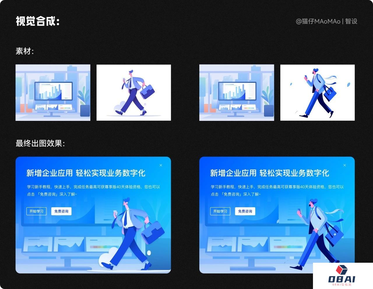 这一步考验的是设计师的审美和手活,我们需要把背景和主视觉素材,进行视觉合成,其实也非常简单: