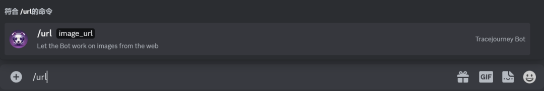 (2)在自己的服务器生成图片后,点击放大后的图片,在浏览器中打开,复制图片地址,然后回到Tracejourney服务器,找到midjourney-bot-test频道,输入/url,就会出现/url image_url菜单,点击该菜单,粘贴url,回车,图片就出来了。