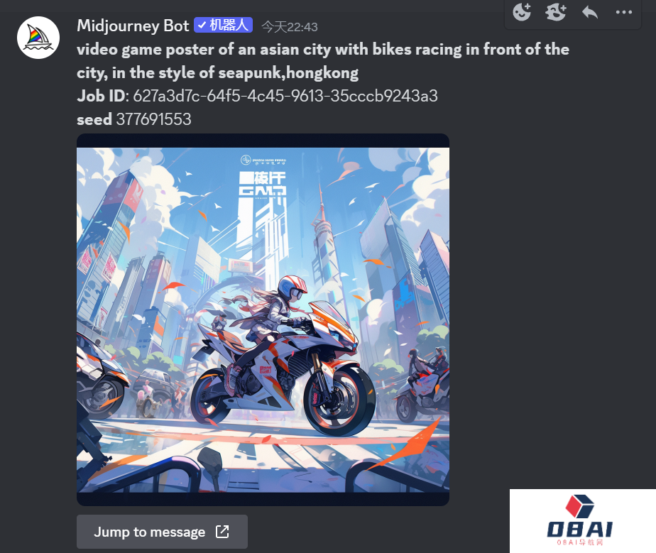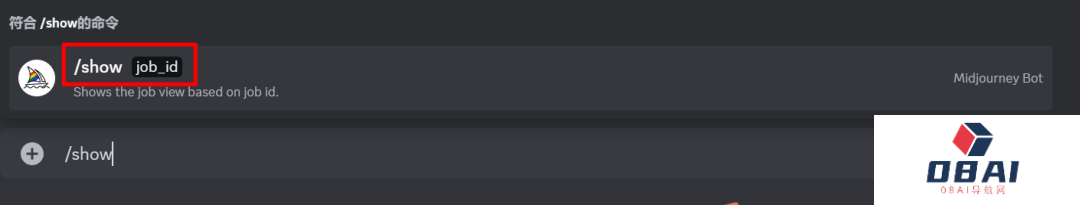 我们复制这个Job ID,然后回到Tracejourney服务器,找到midjourney-bot-test频道,输入/show,就会出现/show job_id菜单,点击该菜单,粘贴Job ID,回车,图片就出来了。