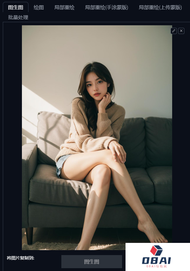 以下图这个美美的小姐姐图片作为处理对象,将图片拖入到图生图的图片区域: