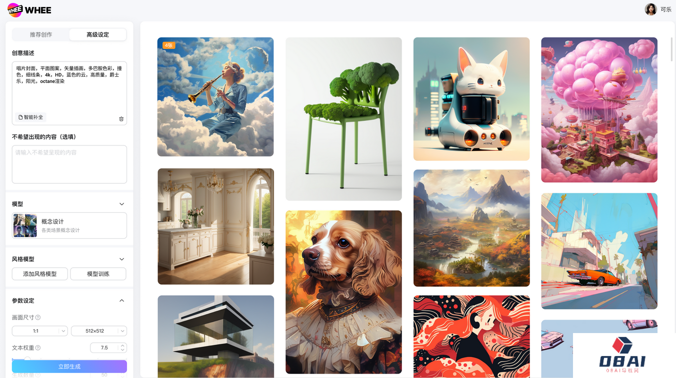 工具介绍:WHEE是美图公司基于其视觉大模型MiracleVision最新推出的AI图片和绘画创作平台,该AI图片生成工具支持多种模式的图片创作,包括文生图、图生图、风格模型训练和创作提示词库。
