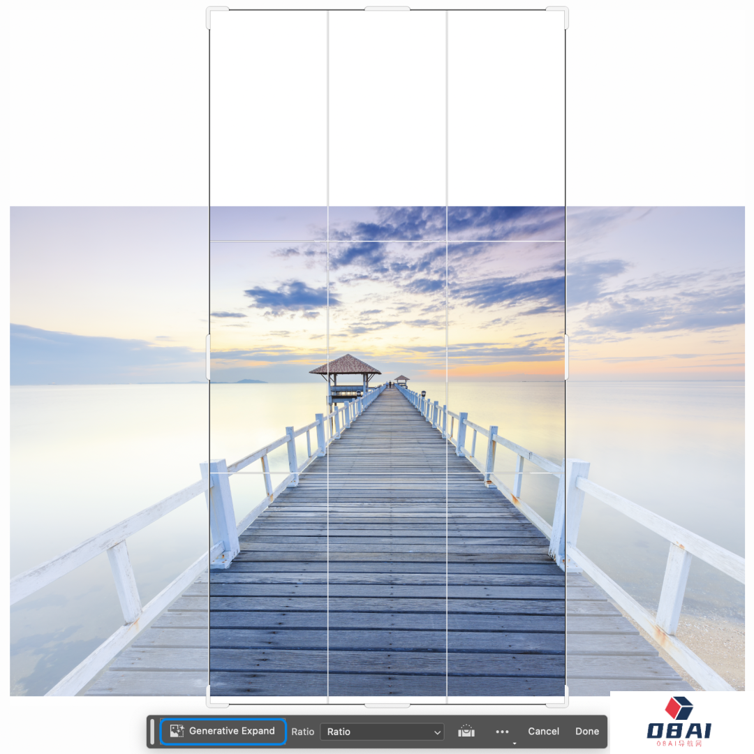 别慌,利用PS AI的Expand功能,将原图裁剪出需要调整构图的部分,选择你喜欢的竖图尺寸比例,比如2:3。